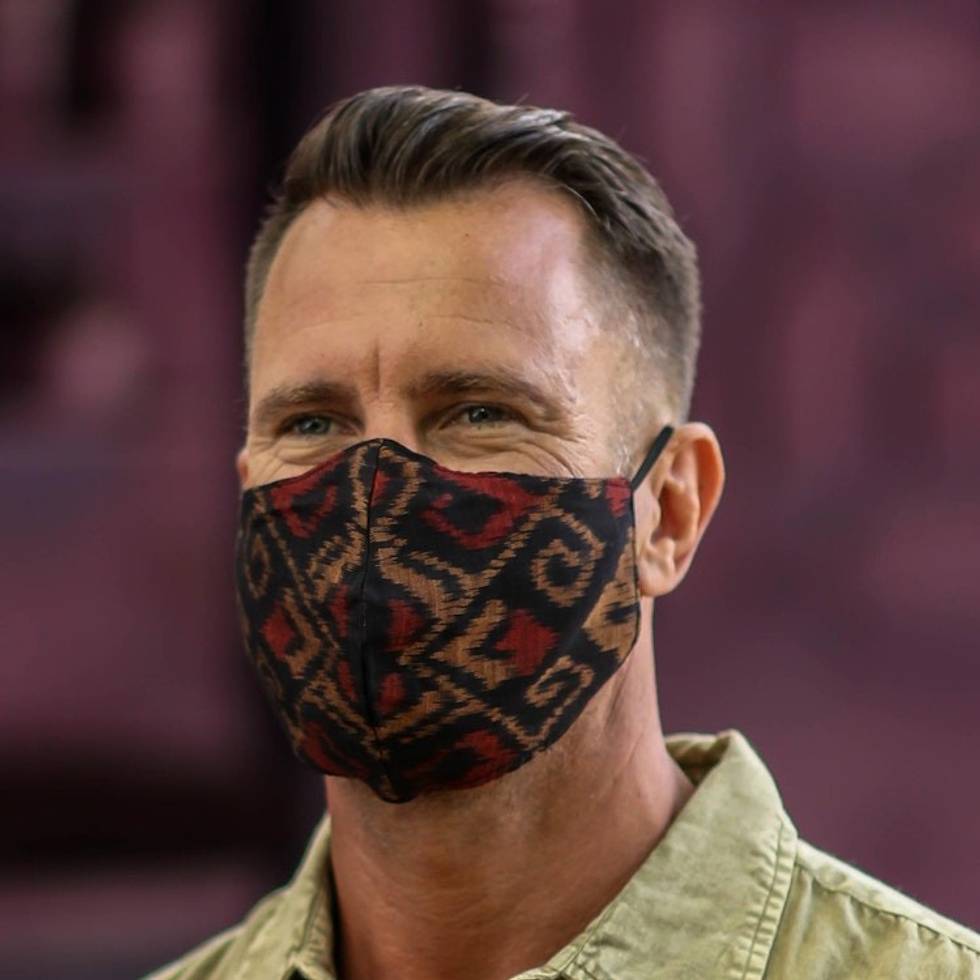 1 Black-1 Burgundy-1 Blue-2-Layer Contoured Ikat Cotton Mask 'Ikat Jewels' Item ID: 2671746369
