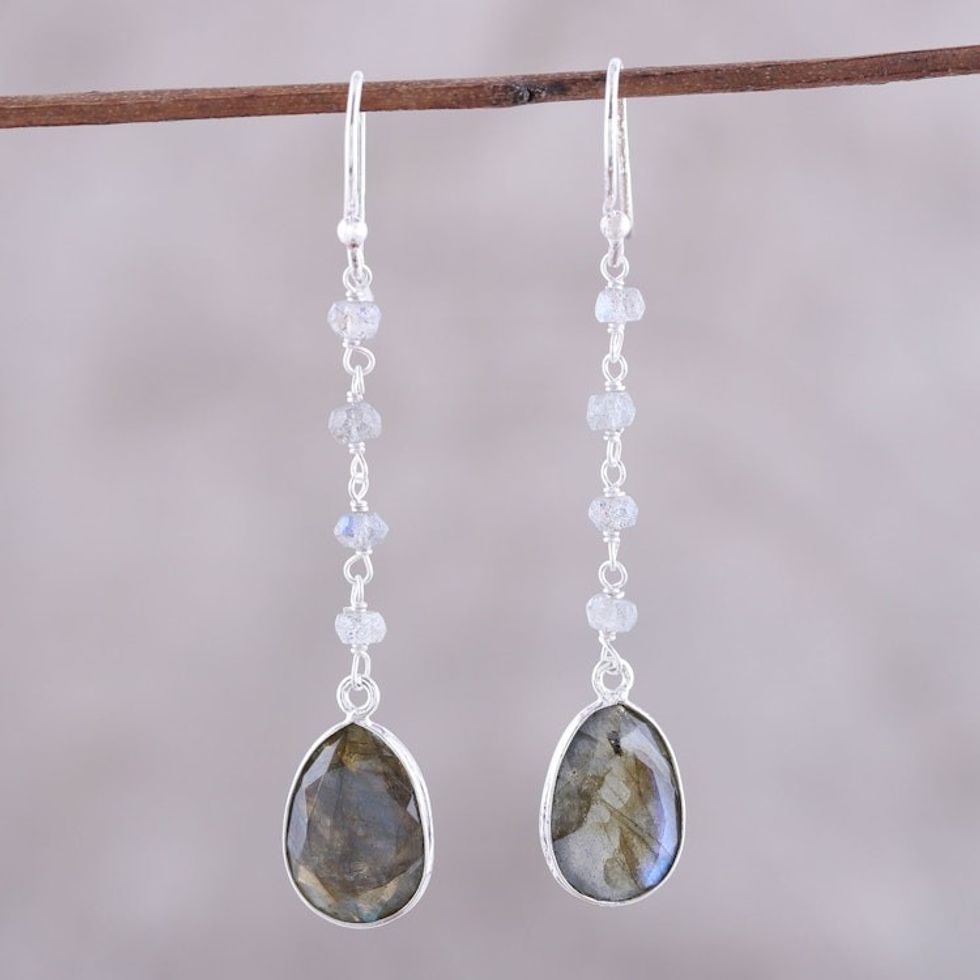 10-Carat Labradorite Dangle Earrings from India 'Raining Drops' Item ID: 2669925121