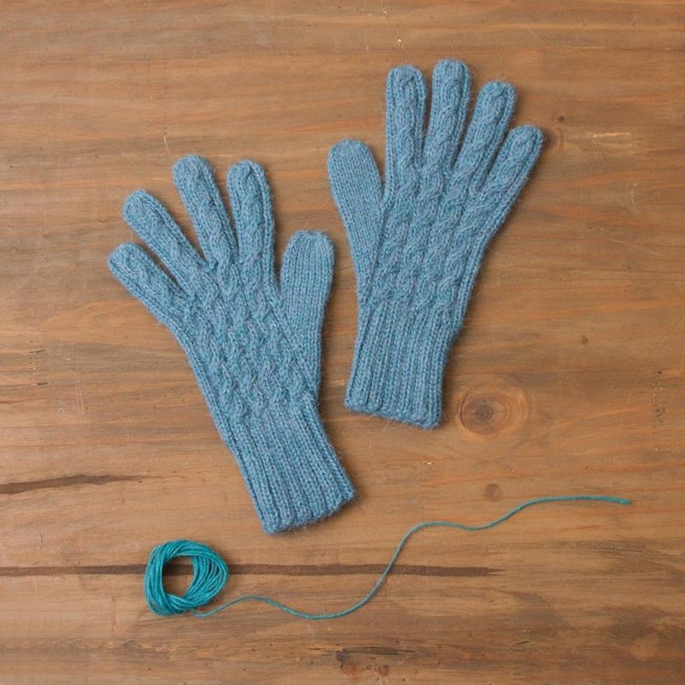 100 Alpaca Knit Gloves in Light Azure from Peru 'Winter Delight in Light Azure' Item ID: 2669891457