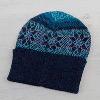 100 Alpaca Knit Hat in Teal and Seafoam from Peru 'Andean Snow' Item ID: 2670396606