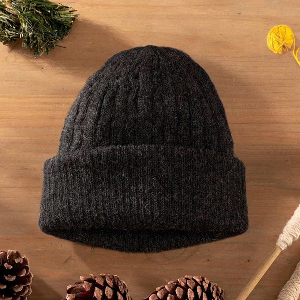 100 Alpaca Knit Textured Beanie Hat in Grey Hue from Peru 'Charcoal Style' Item ID: 2671399431