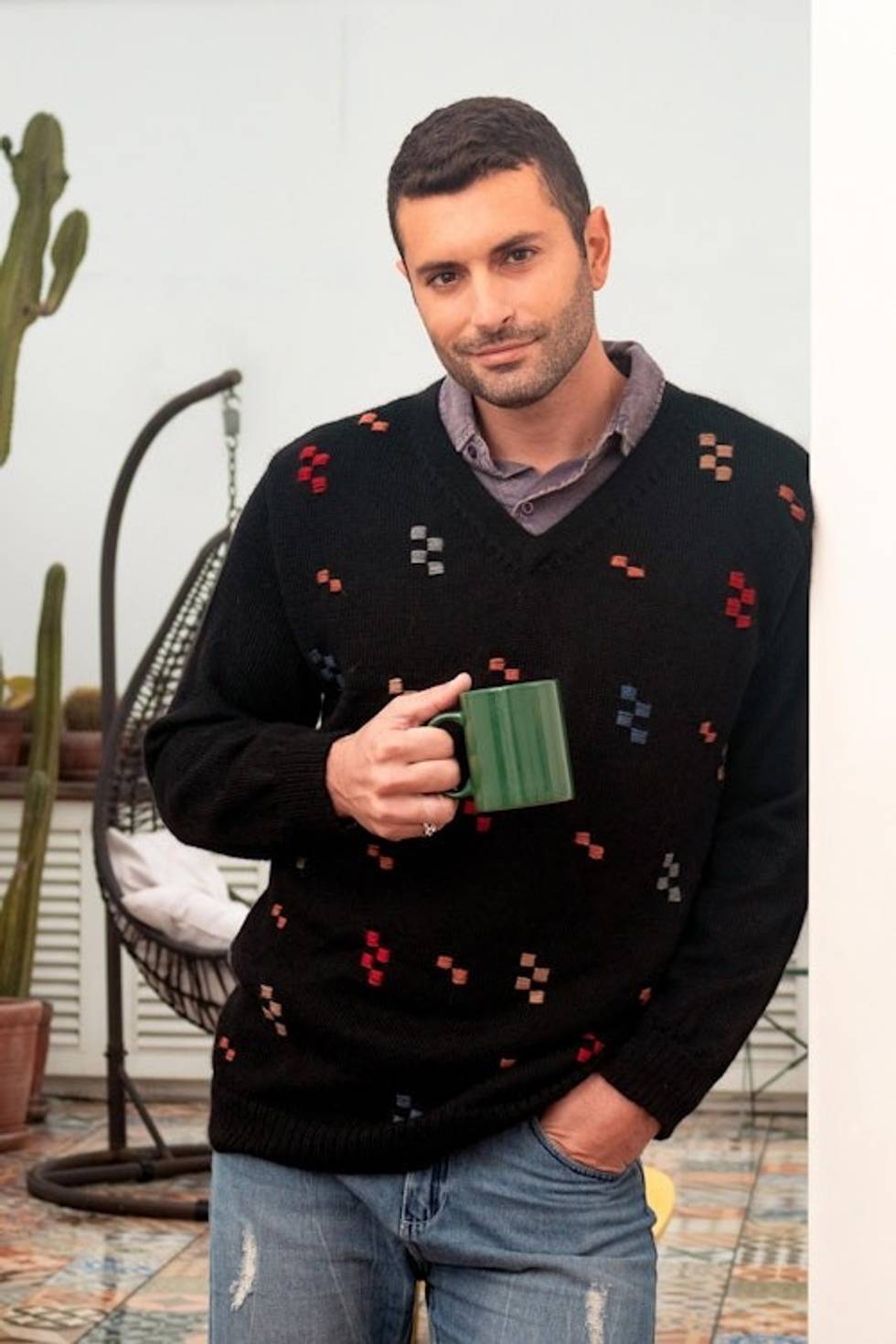 100 Alpaca Men's Pullover Sweater with Hand Embroidery 'Little Stitches' Item ID: 2669891115