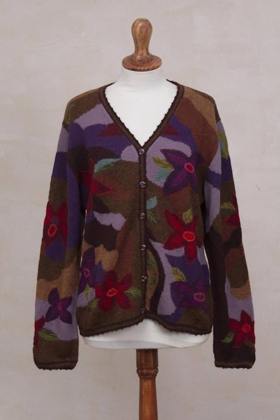 100 Alpaca Multi-Color Floral Motif Cardigan Sweater 'Blooming Landscape' Item ID: 2671819268