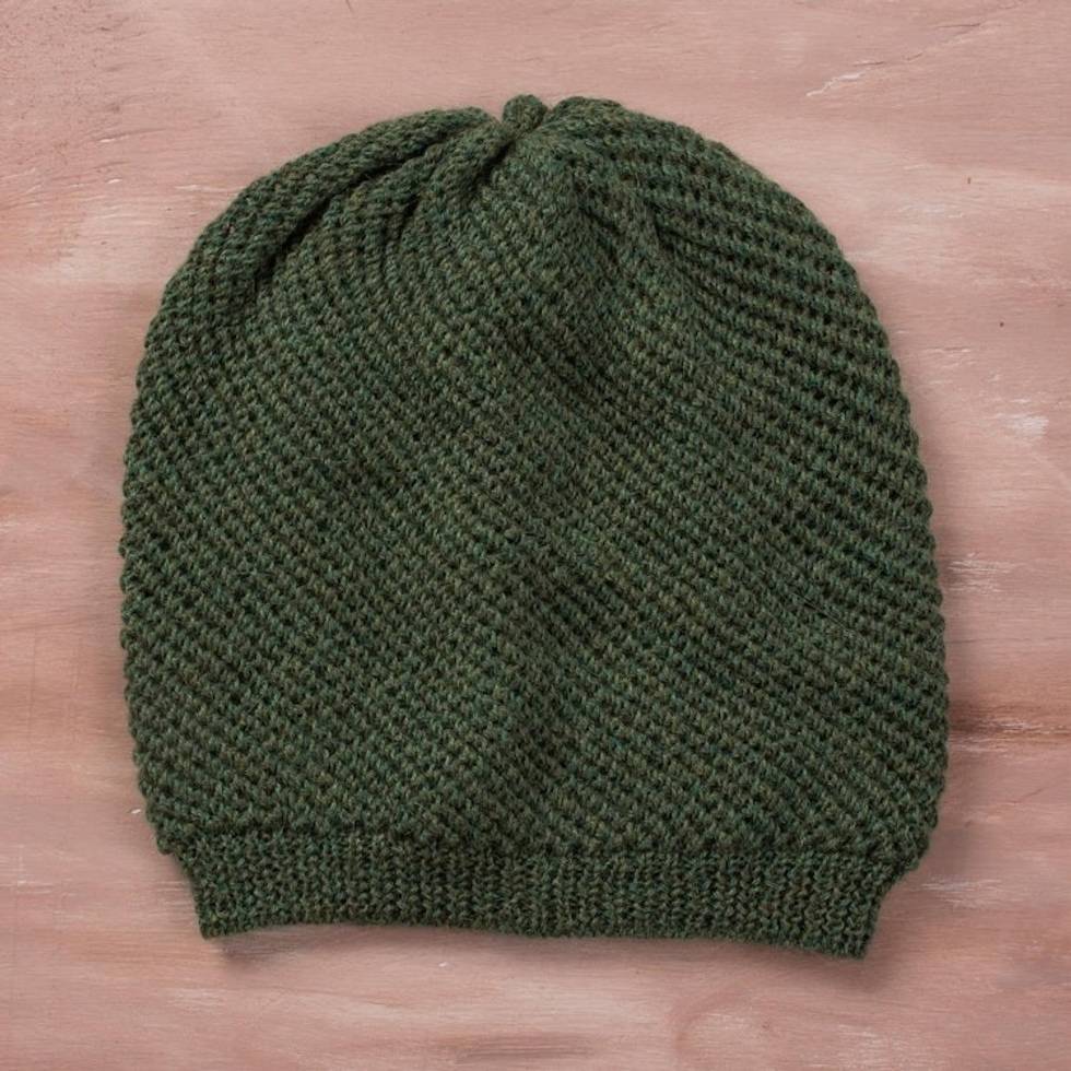 100 Baby Alpaca Hat in Avocado from Peru 'Avocado Honeycomb' Item ID: 2671399569