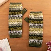 100 Baby Alpaca Knit Fingerless Mitts in Green from Peru 'Mystic Jungle' Item ID: 2669891441