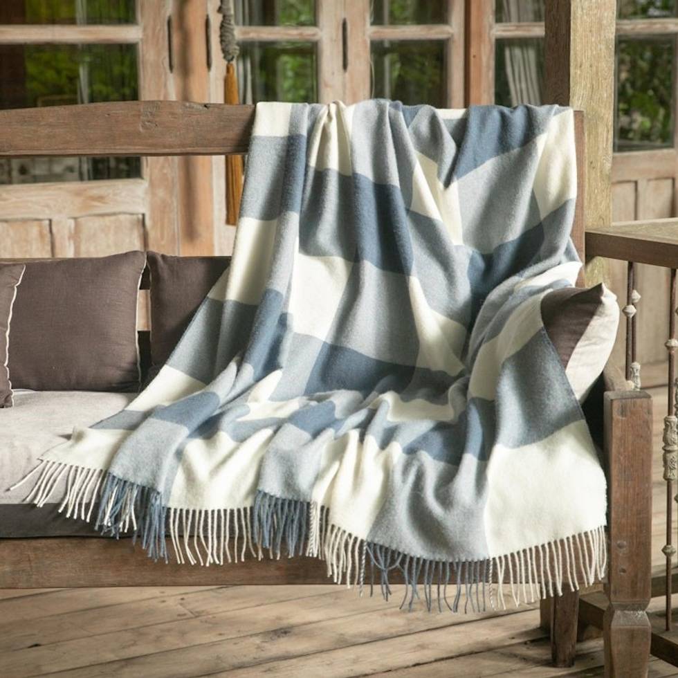 100 Baby Alpaca Throw in Azure from Peru 'Comfy Checks in Azure' Item ID: 2671819518