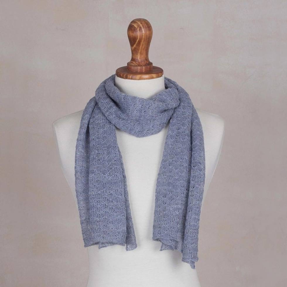 100 Baby Alpaca Wrap Scarf in Steel Blue from Peru 'Steel Blue Gossamer' Item ID: 2669904195
