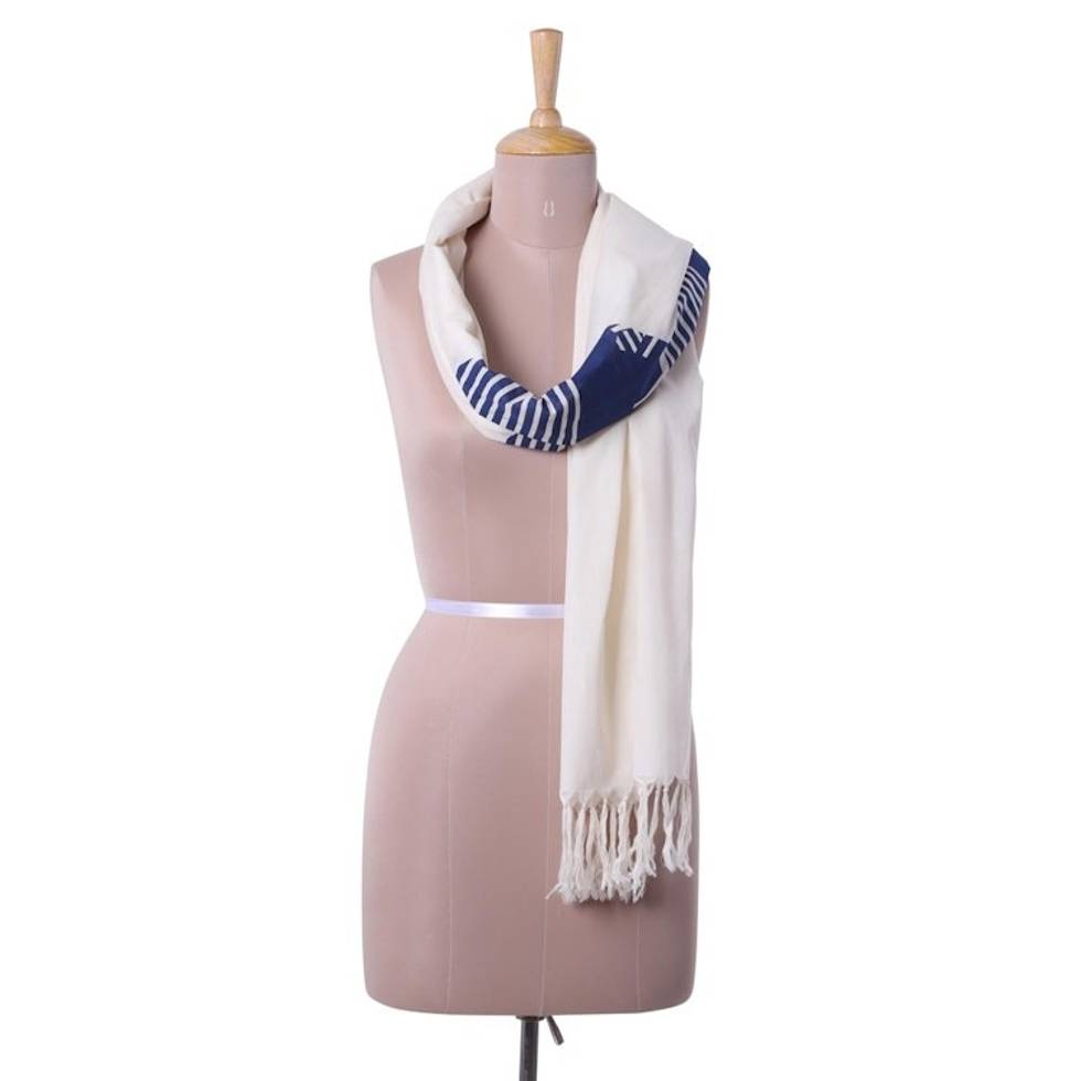 100 Cotton Alabaster and Navy Wrap Scarf from India 'Alabaster Whisper' Item ID: 2671791876