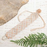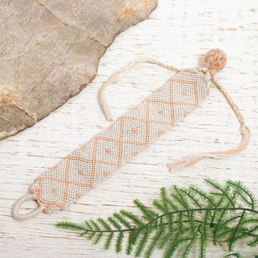 100 Cotton Hand Woven Diamond-Patterned Bracelet 'Oyster and Melon' Item ID: 2671808285