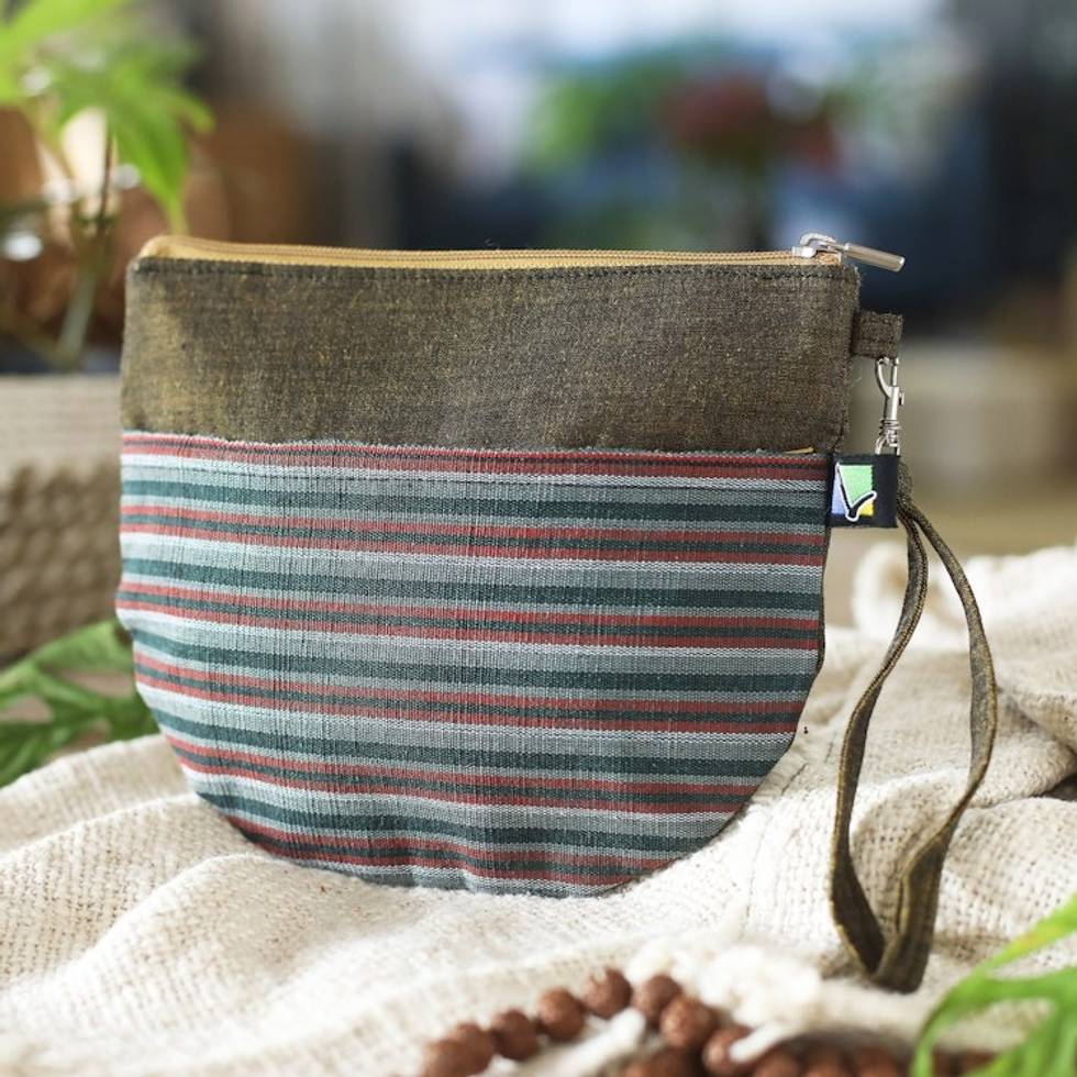 100 Cotton Striped Sage Clutch Wristlet Handwoven in Java 'Lurik Sphere Sage' Item ID: 2671763389