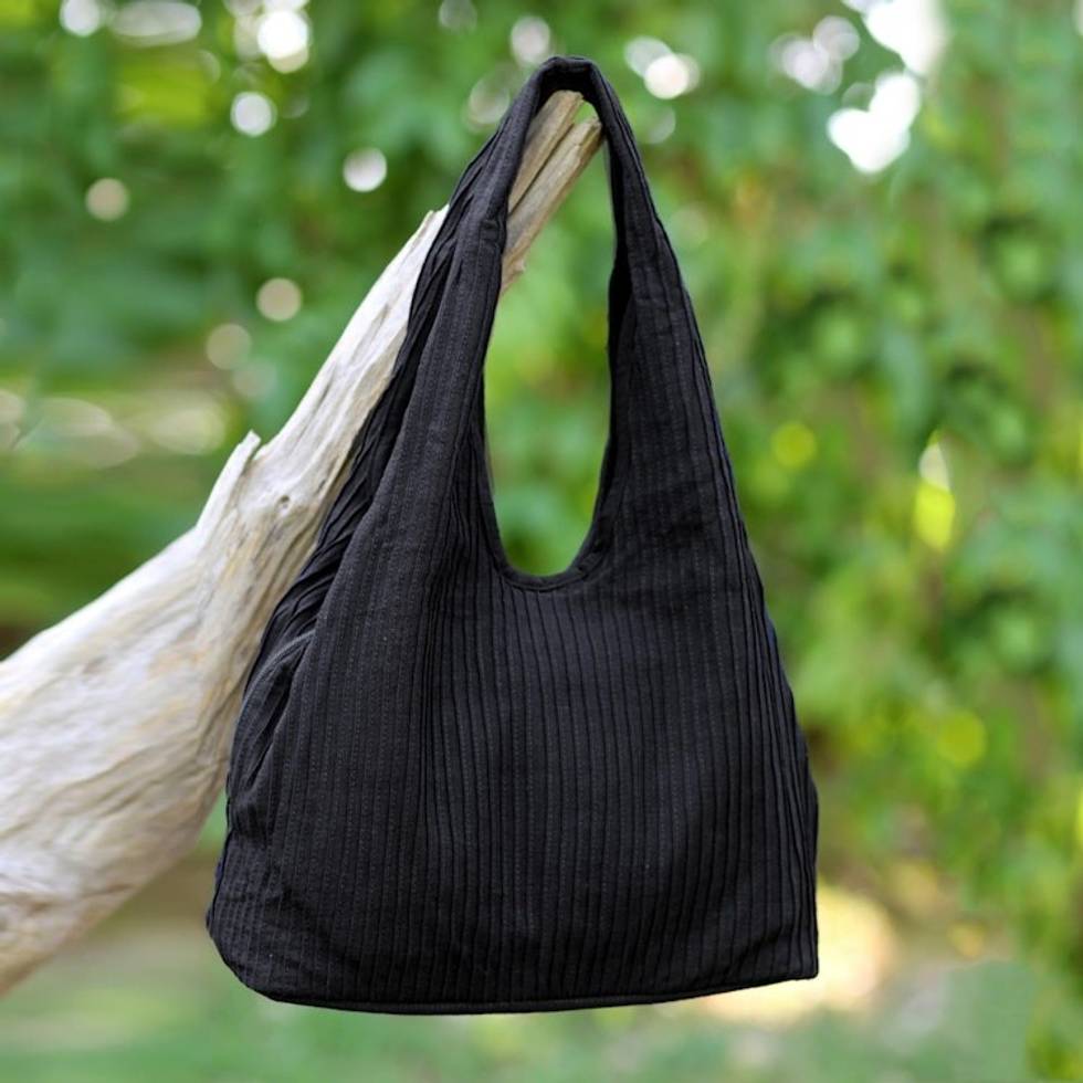 100 Cotton Textured Shoulder Bag in Black from Thailand 'Thai Texture in Black' Item ID: 2671802467