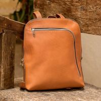 100 Leather Backpack with Zipper Accents from Costa Rica 'Stroll Through the City' Item ID: 2671771972