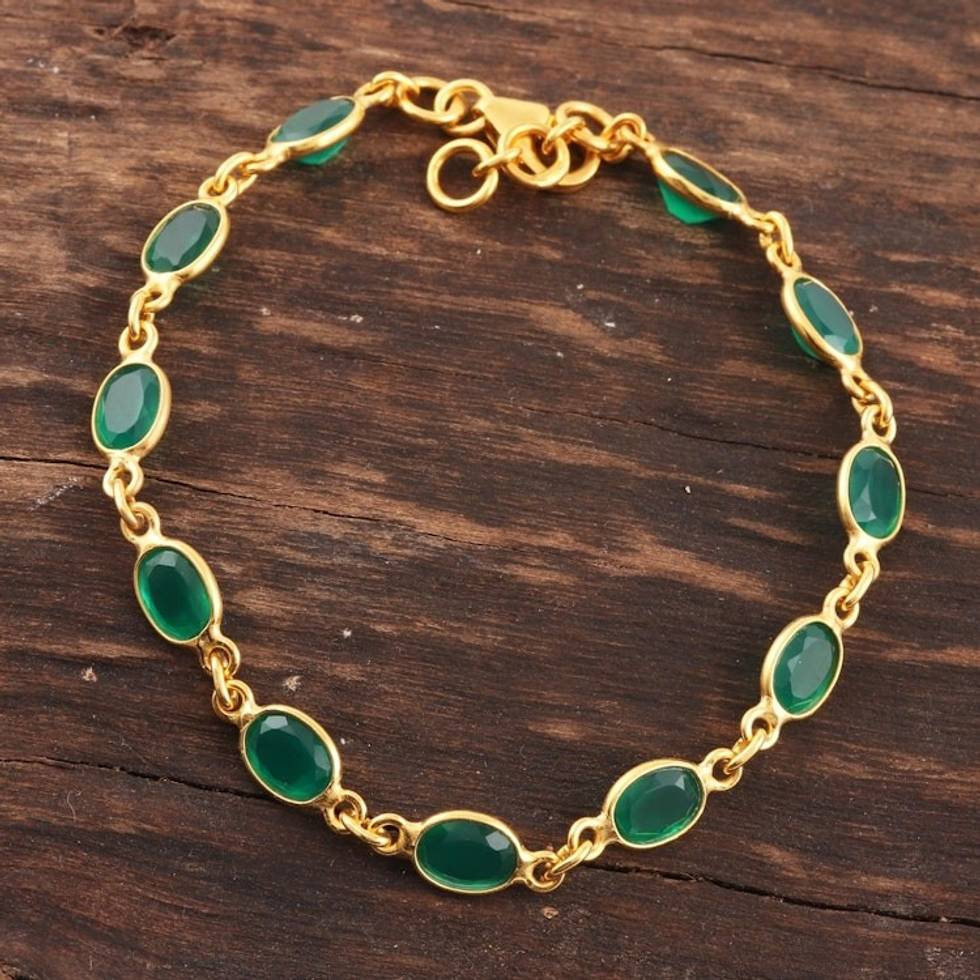 11-Carat Gold Plated Green Onyx Link Bracelet from India 'Verdant Glitz' Item ID: 2671789850