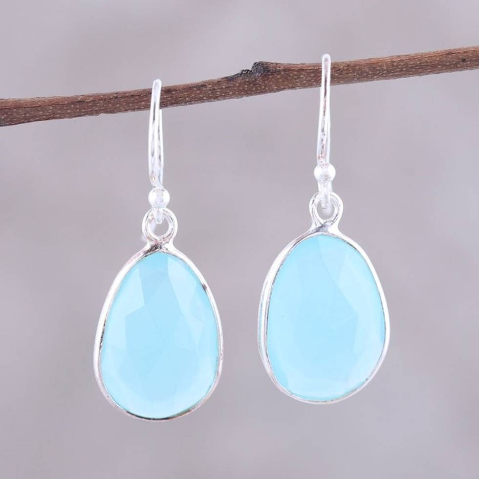 12-Carat Blue Chalcedony Dangle Earrings from India 'Radiant Sea' Item ID: 2671619160