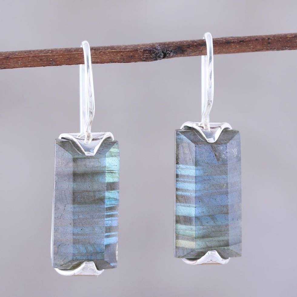 12-Carat Labradorite Drop Earrings from India 'Beautiful Aurora' Item ID: 2669941890