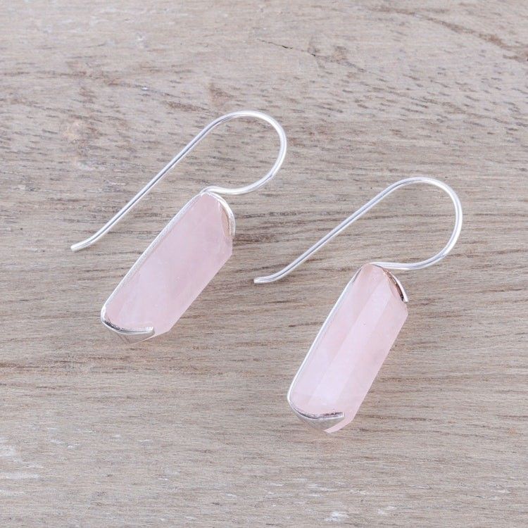 12-Carat Rose Quartz Drop Earrings from India 'Beautiful Pink' Item ID: 2671792879