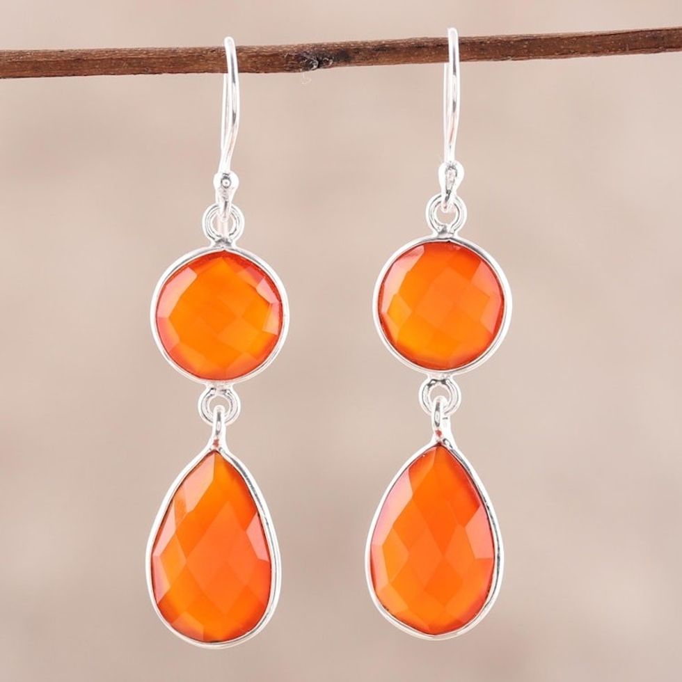 13.5-Carat Carnelian Dangle Earrings from India 'Fiery Charm' Item ID: 2671792041