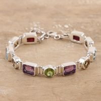 14-Carat Faceted Multi-Gemstone Link Bracelet from India 'United Gems' Item ID: 2671625715