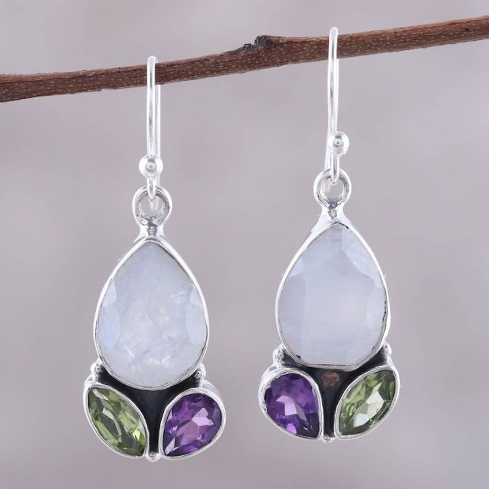 14-Carat Multi-Gemstone Dangle Earrings from India 'Dazzling Fusion' Item ID: 2671792556