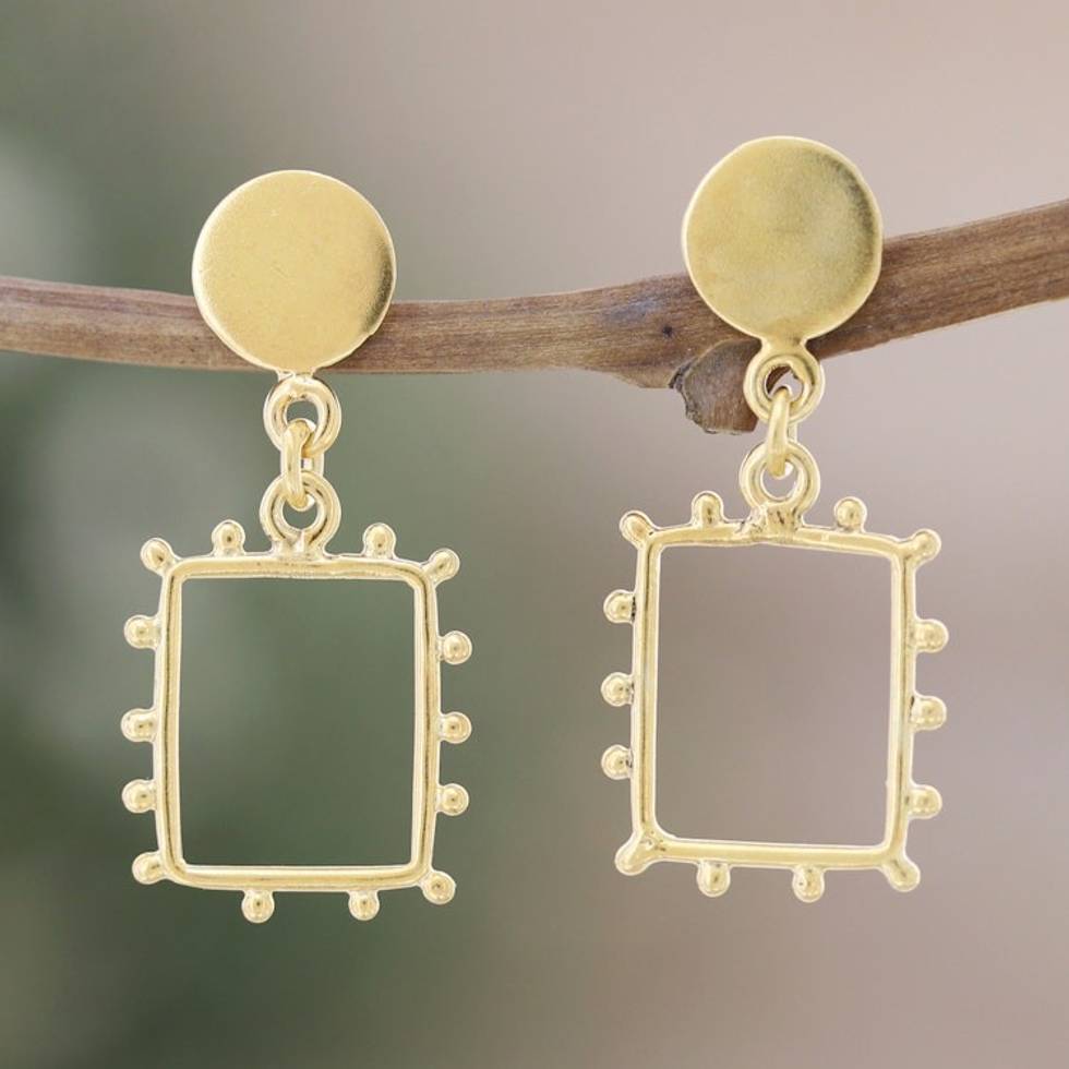 14k Gold-Plated Dangle Earrings with Geometric Design 'Glorious Square' Item ID: 2671786618
