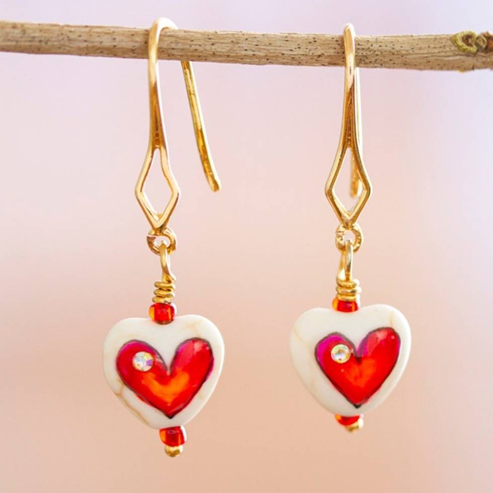 14k Gold-Plated Dangle Earrings with Heart-Shaped Howlite 'Creative Love' Item ID: 2669931143