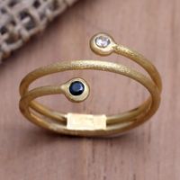 14K Gold Plated Wrap Ring with Cubic Zirconia and Crystal 'Light to Dark' Item ID: 2671667475