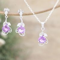 18-Carat Rhodium-Plated Jewelry Set with Amethyst Gems 'Purple Divinity' Item ID: 2671786947