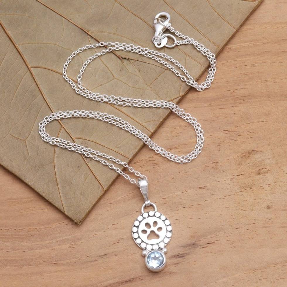 18-Inch Necklace with Faceted Blue Topaz Pawprint Pedant 'Pawprint Memory' Item ID: 2671744996