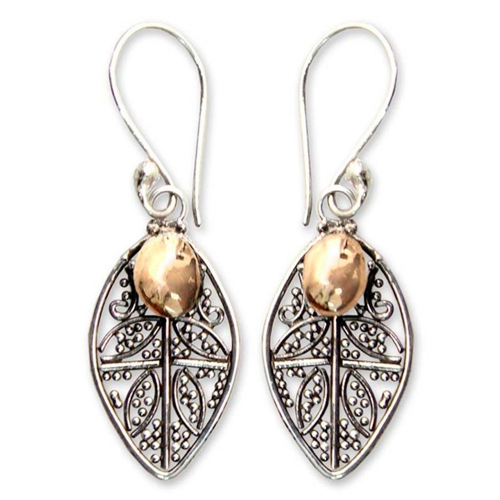 18k Gold Accent Sterling Silver Dangle Earrings 'Golden Dew' Item ID: 2671698973