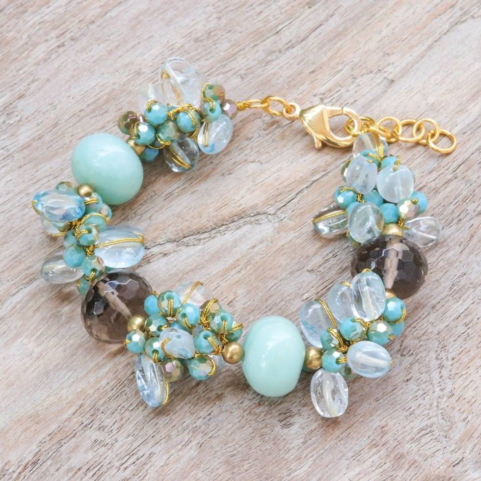 18k Gold-Accented Blue Agate and Quartz Beaded Bracelet 'Blue Spell' Item ID: 2671797954