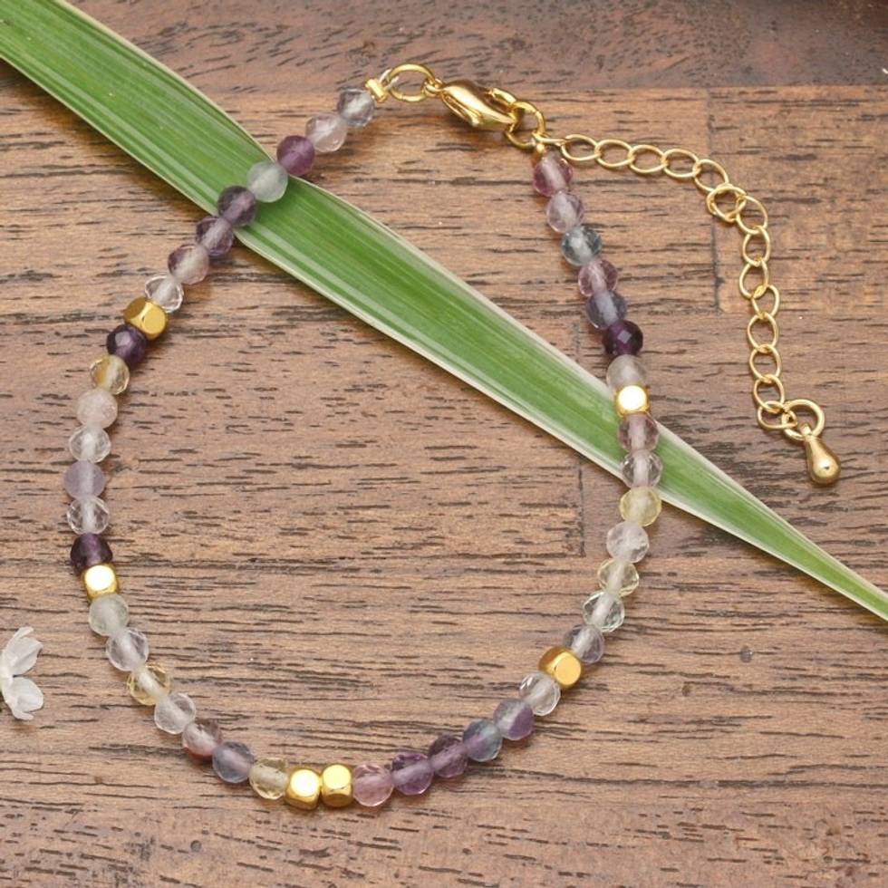 18k Gold-Accented Brass and Fluorite Beaded Bracelet 'Enchanted Gold' Item ID: 2671765272