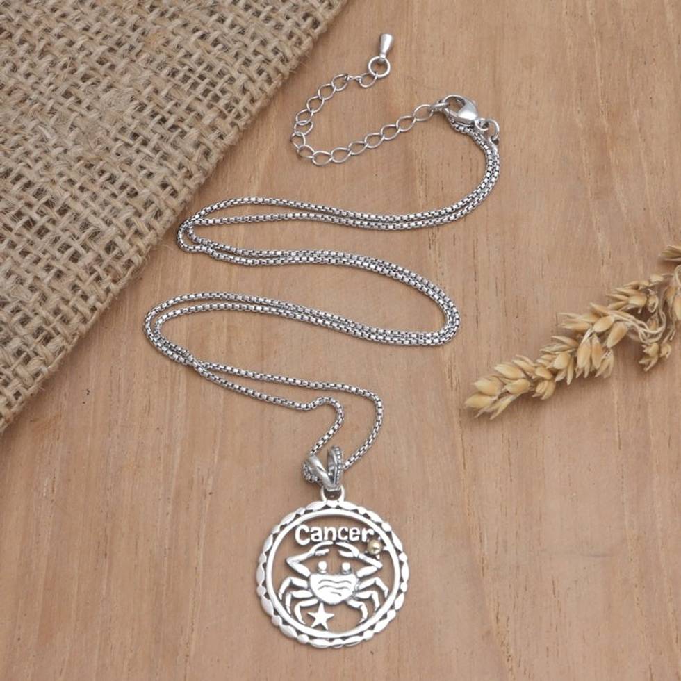 18k Gold-Accented Cancer Pendant Necklace from Bali 'Sparkling Cancer' Item ID: 2671747789