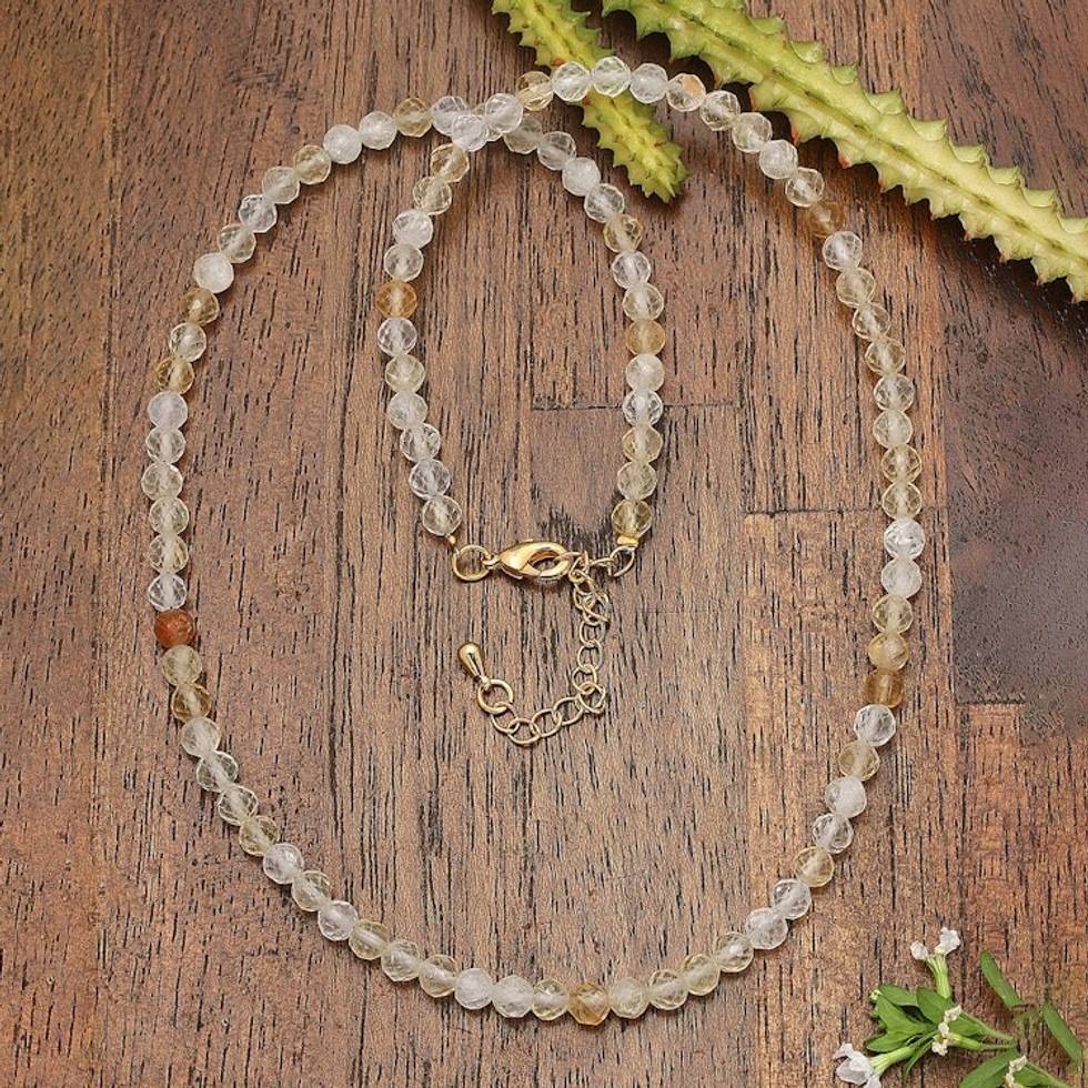 18k Gold-Accented Citrine Beaded Necklace from Bali 'Golden Victory' Item ID: 2671765378