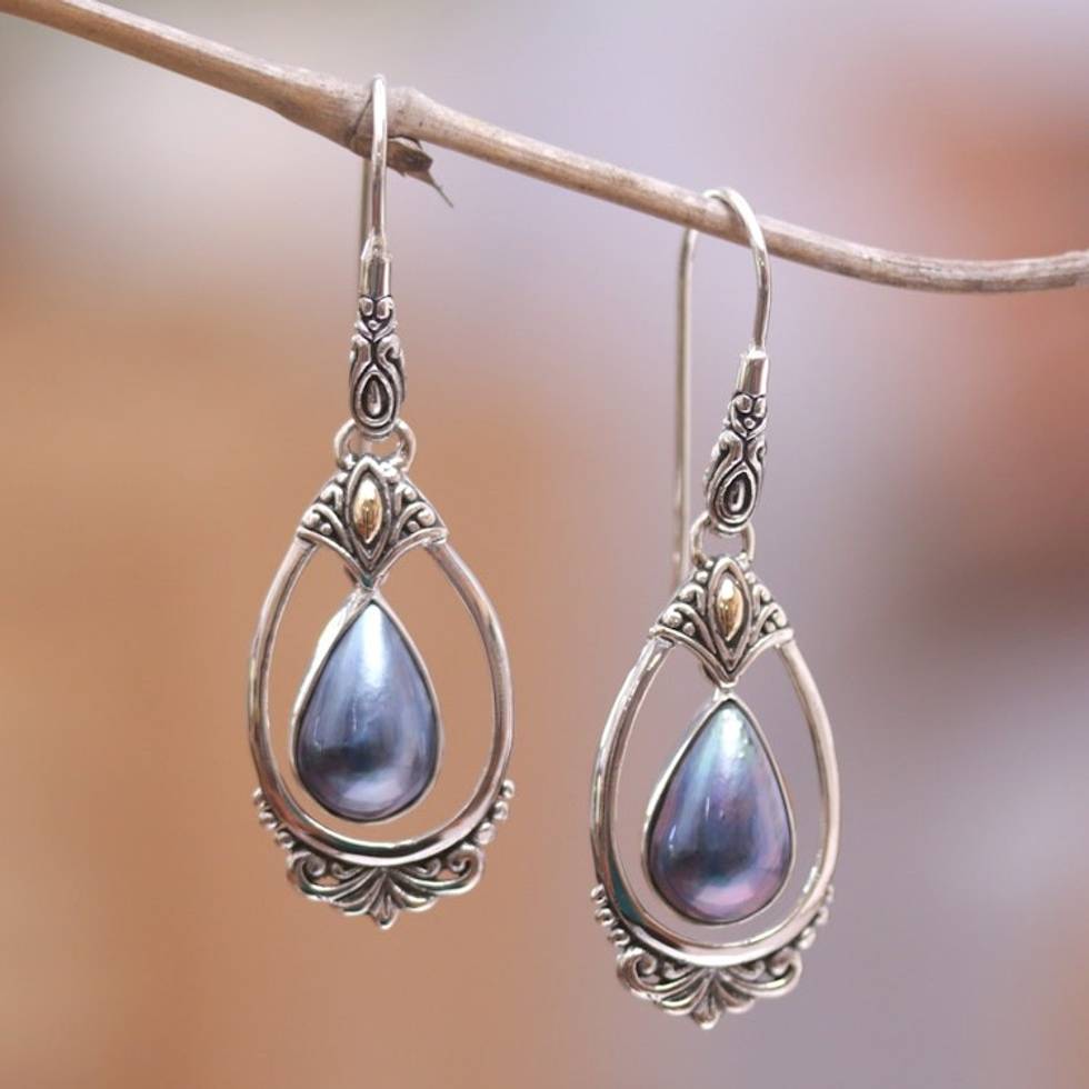 18k Gold-Accented Dangle Earrings with Blue Pearls 'Blue Victoriana' Item ID: 2671748201