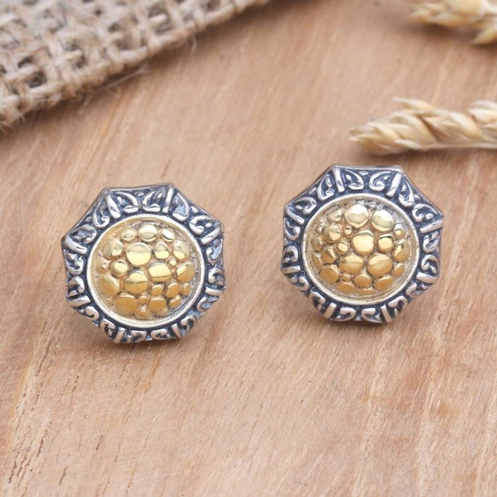 18k Gold-Accented Earrings from Bali 'Golden Gianyar' Item ID: 2671748282