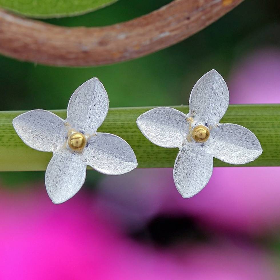 18k Gold-Accented Flower-Shaped Button Earrings 'Grace of Spring' Item ID: 2671646442
