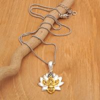 18k Gold-Accented Lotus-Themed Pendant Necklace from Bali 'Sarasvati Lotus' Item ID: 2671764698
