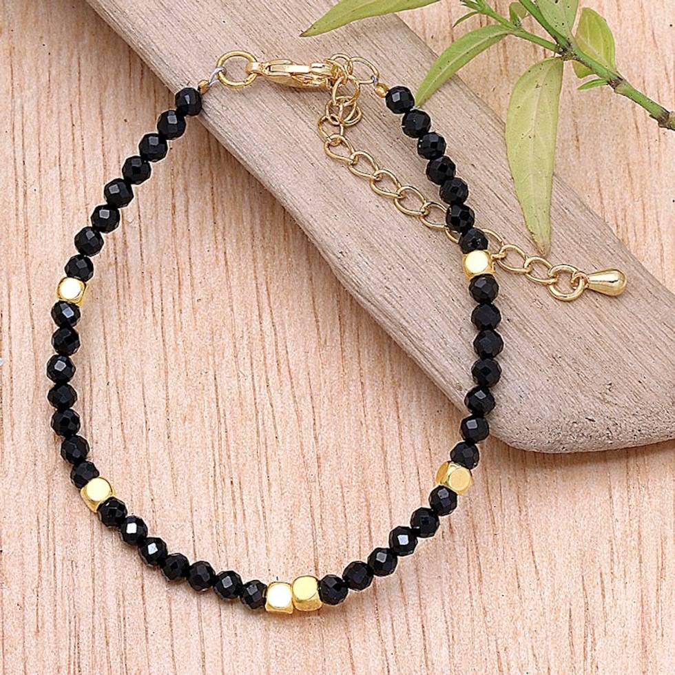 18k Gold-Accented Onyx Beaded Bracelet from Bali 'Gold in the Dark' Item ID: 2671668140