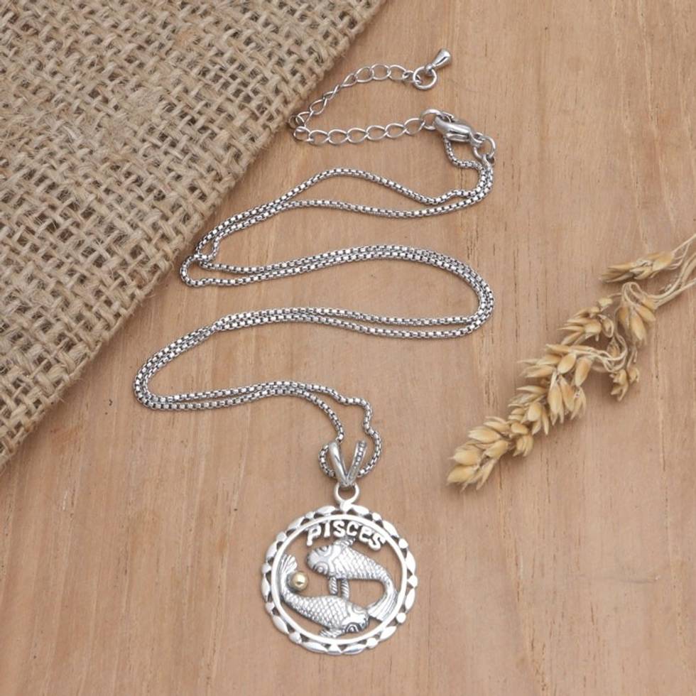 18k Gold-Accented Pisces Pendant Necklace from Bali 'Sparkling Pisces' Item ID: 2671748262