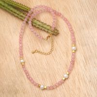 18k Gold-Accented Rose Quartz and Pearl Beaded Necklace 'Pink Cocktail' Item ID: 2671765268