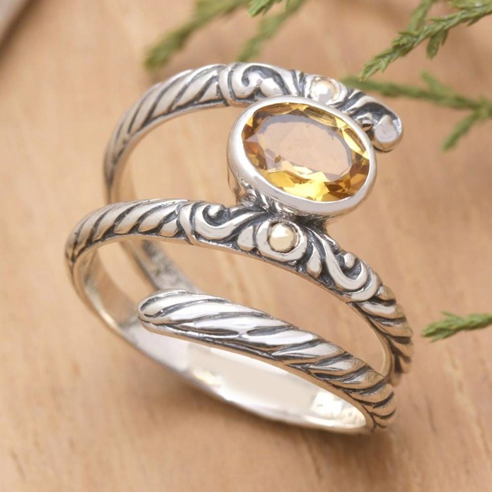 18k Gold-Accented Silver Cocktail Ring with Citrine Stone 'Radiant Appeal' Item ID: 2669922025