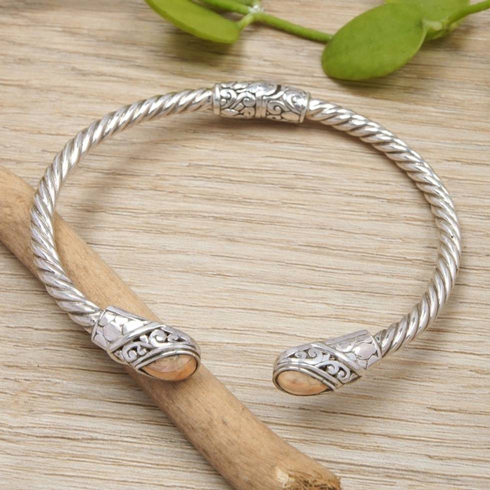 18k Gold-Accented Sterling Silver Cuff Bracelet from Bali 'Sparkling Bali' Item ID: 2671764668