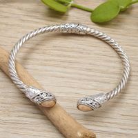 This is unique, well-crafted, bracelet which I will wear a lot, as it goes with anything. The construction is such that it is a bit like a taut spring that opens enough to allow the hand to slide in, and then springs back to circle the arm lovingly, but not tightly. The design is clean and modern looking, almost Scandinavian in concept, yet distinctly Balinese in curvature. It is already one of my favorite pieces of jewelry and I am getting another to give to my best friend.