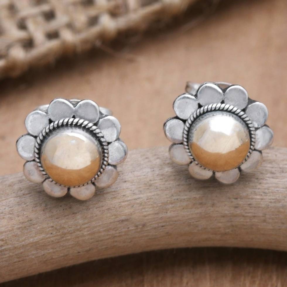 18k Gold-Accented Sterling Silver Floral Stud Earrings 'Divine Flora' Item ID: 2669921437