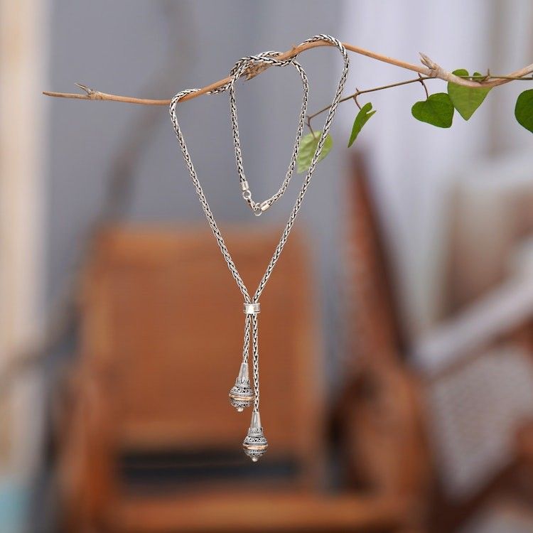 18k Gold-Accented Sterling Silver Lariat Necklace from Bali 'Vihara Vibes' Item ID: 2671670935