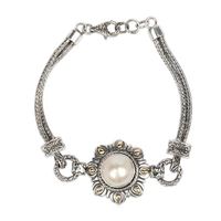 18k Gold-Accented White Cultured Mabe Pearl Pendant Bracelet 'White Sunflower' Item ID: 2676657653