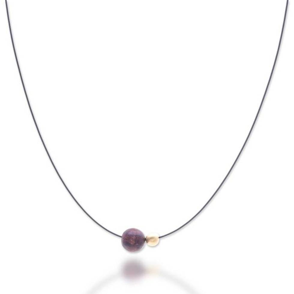 18k Gold-Accented Wood Pendant Necklace from Thailand 'Contrasting Spheres' Item ID: 2676653227