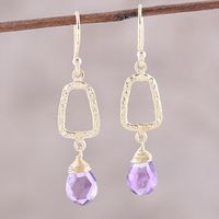 18k Gold Plated Amethyst Dangle Earrings from India 'Dancing Frames' Item ID: 2671792277