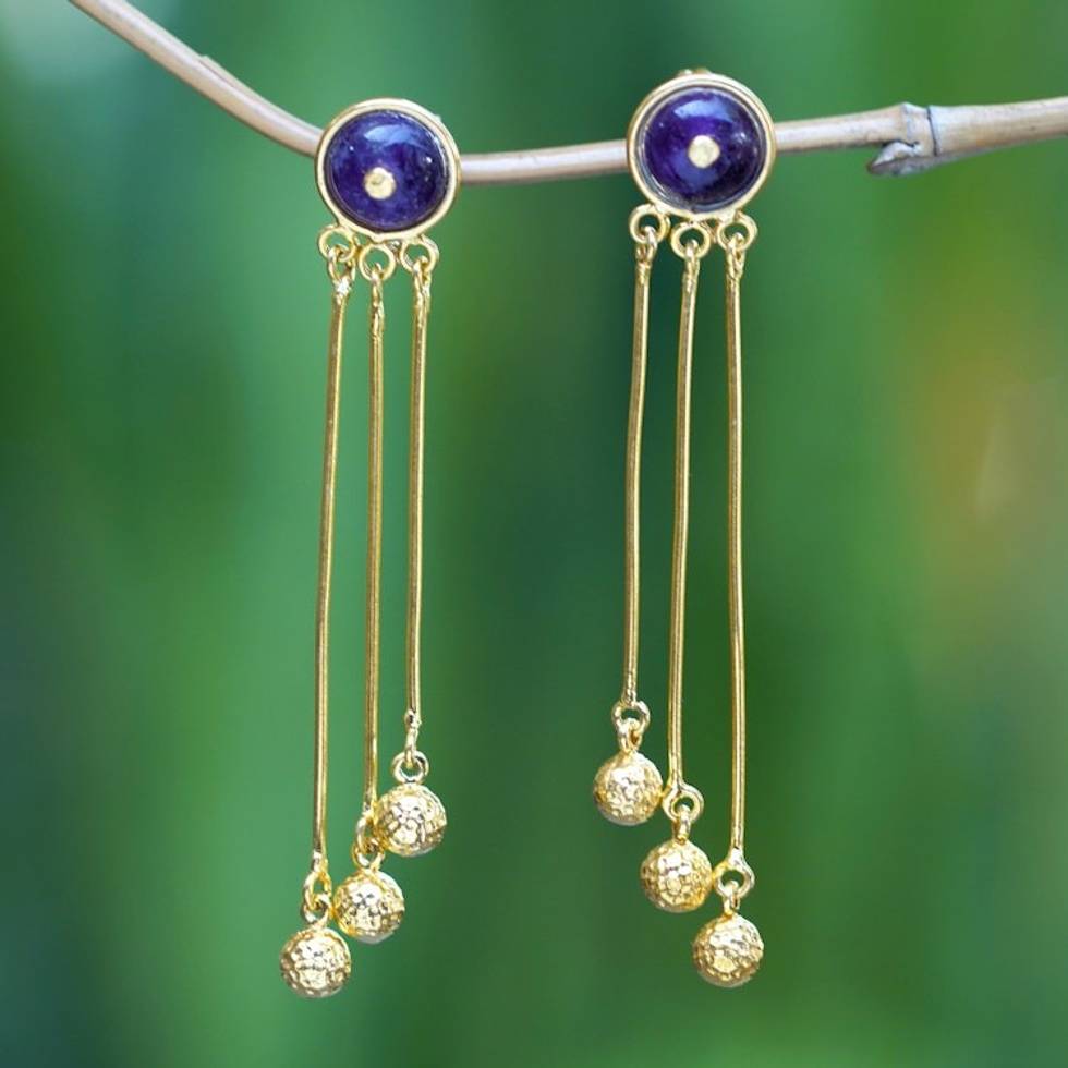 18k Gold-Plated Amethyst Statement Dangle Earrings from Bali 'Glorious Rays' Item ID: 2671567895