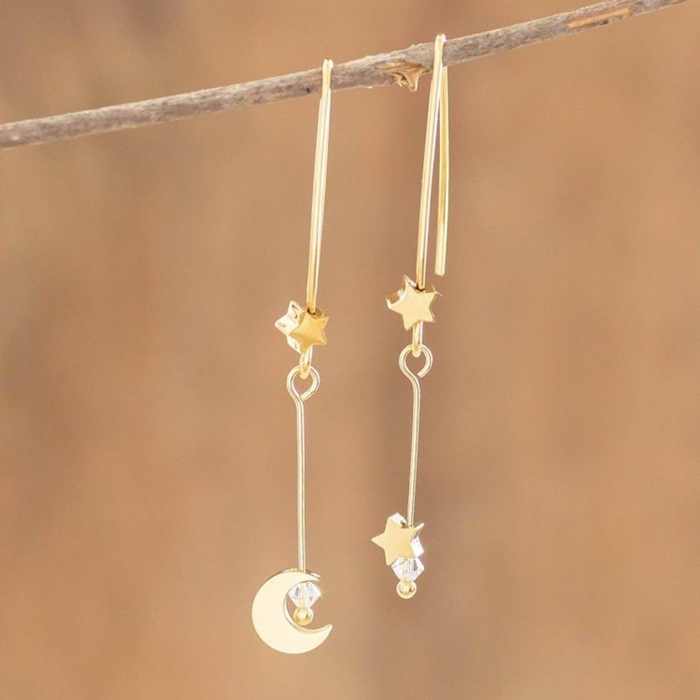 18K Gold Plated and Crystal Dangle Earrings from Costa Rica 'Costa Rican Night' Item ID: 2671772541